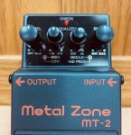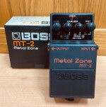 Boss' classic high-gain stompbox, the MT-2 is known for its ability to apply anything from light distortion to shredded decimation to your signal. The simple control scheme features controls for the signal level (volume), distortion amount, and two concentric pots in the center to give you a full 3-band EQ over your sound. Powered via battery or standard 9v adapter, this pedal includes its original box.