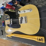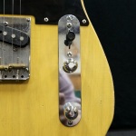 A premium partscaster, this T-type guitar takes its inspiration from the Blackguard guitars of the 1950s and features a 1pc MJT body which we believe to be ash, a flame maple U shaped neck from Warmoth Licensed by Fender, a pair of Josefina 50/51 Blackguard Tele pickups, and is wired with a vintage-style Gibson bumblebee capacitor & CTS pots. Weighing in at 7lb 2oz, this Blackguard is as nimble as they get! A great player with an equally compelling tone, this MJT does a superb job of capturing the magic of a 50s Blackguard and includes a moulded foam case.