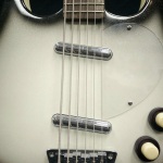 Oozing with vintage-style mojo, this Dan-o Longhorn Baritone is in very good shape with a small nick on the headstock and is otherwise free of breaks or repairs. The bass-meets-guitar design offers a hybrid 29.72" scale length which sits between a standard baritone guitar and a short scale bass. Set up for some serious low end rumble, this baritone is strung with 0.26-0.94 gauge strings with the lower two strings being a 0.74 and 0.94 (the original owner had to flip the low E saddle to get the 0.94 to intonate and can be reversed with lower gauge strings).